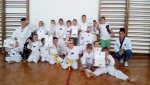 Danas je održano polaganje u našem klubu i bilo je predobro. Trenerica i trener Mladen koji je bio u ispitnoj komisiji bili u prezadovoljni viđenim, pa su ćak dvije naše članice Nina i Pia položile automatski za viši žuti pojas umjesto za žuti.Svi ostali bili su u svojim zadovoljavajućim normama. Imamo novih 5 viših bijelih, 8 žutih pojaseva, dva viša žuta pojasa i pet zelienih pojaseva. Još u subotu slijedi polaganje na Vrbiku. Čestitamo svim polagačima, ali i trenerici!