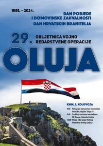Proslava Dana pobjede i domovinske zahvalnosti i Dana hrvatskih branitelja te 29. obljetnice vojno-redarstvene operacije Oluja održat će se 5. kolovoza u Kninu.